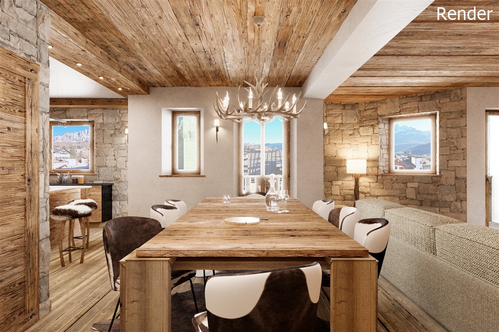 Situato in una posizione centrale, in Largo delle Poste, questo immobile offre una vista su Becco di Mezzodì, Croda da Lago, Tofane e Pomagagnon.